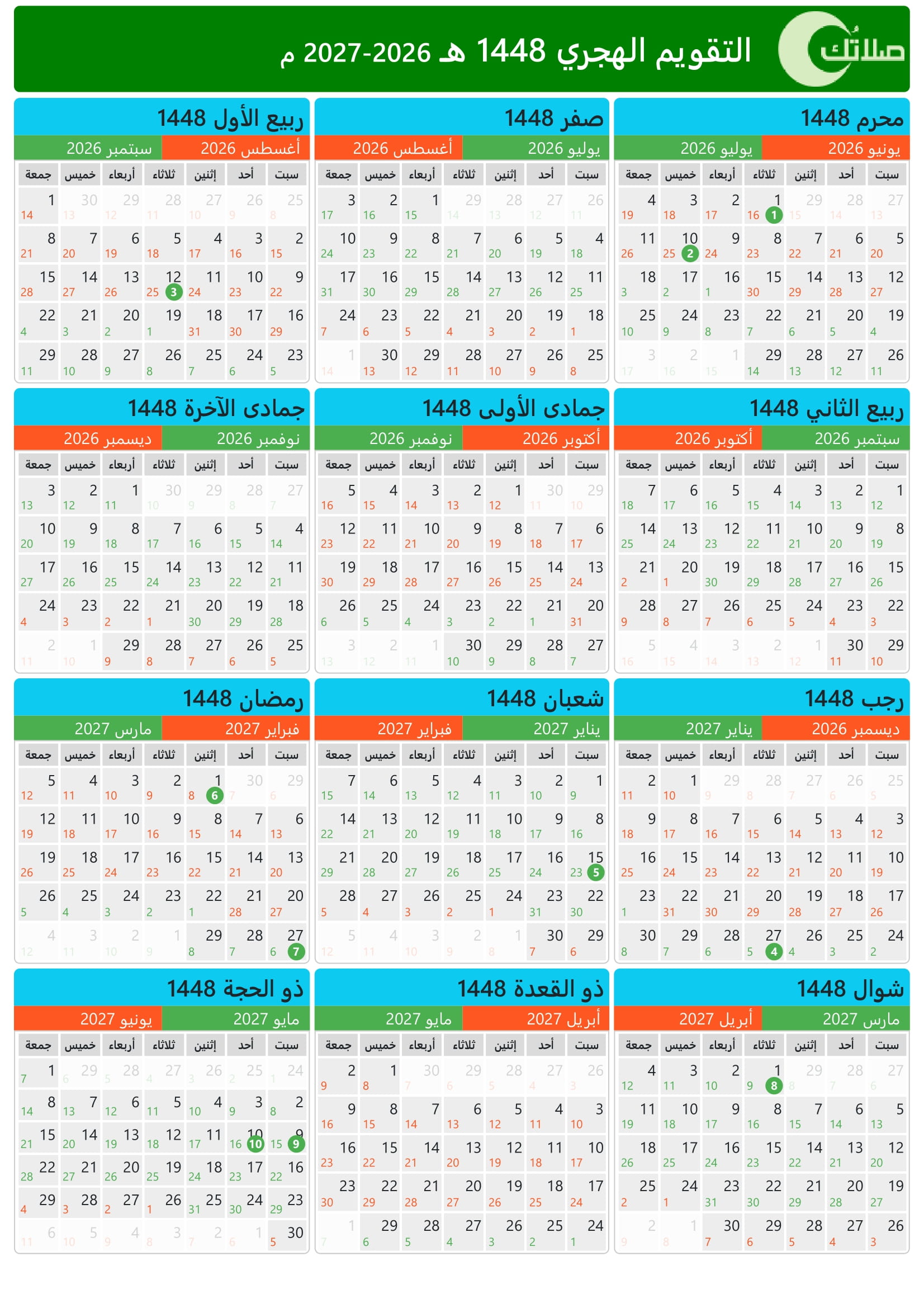 التقويم الهجري في ليبيا 1448 ، 2026-2027